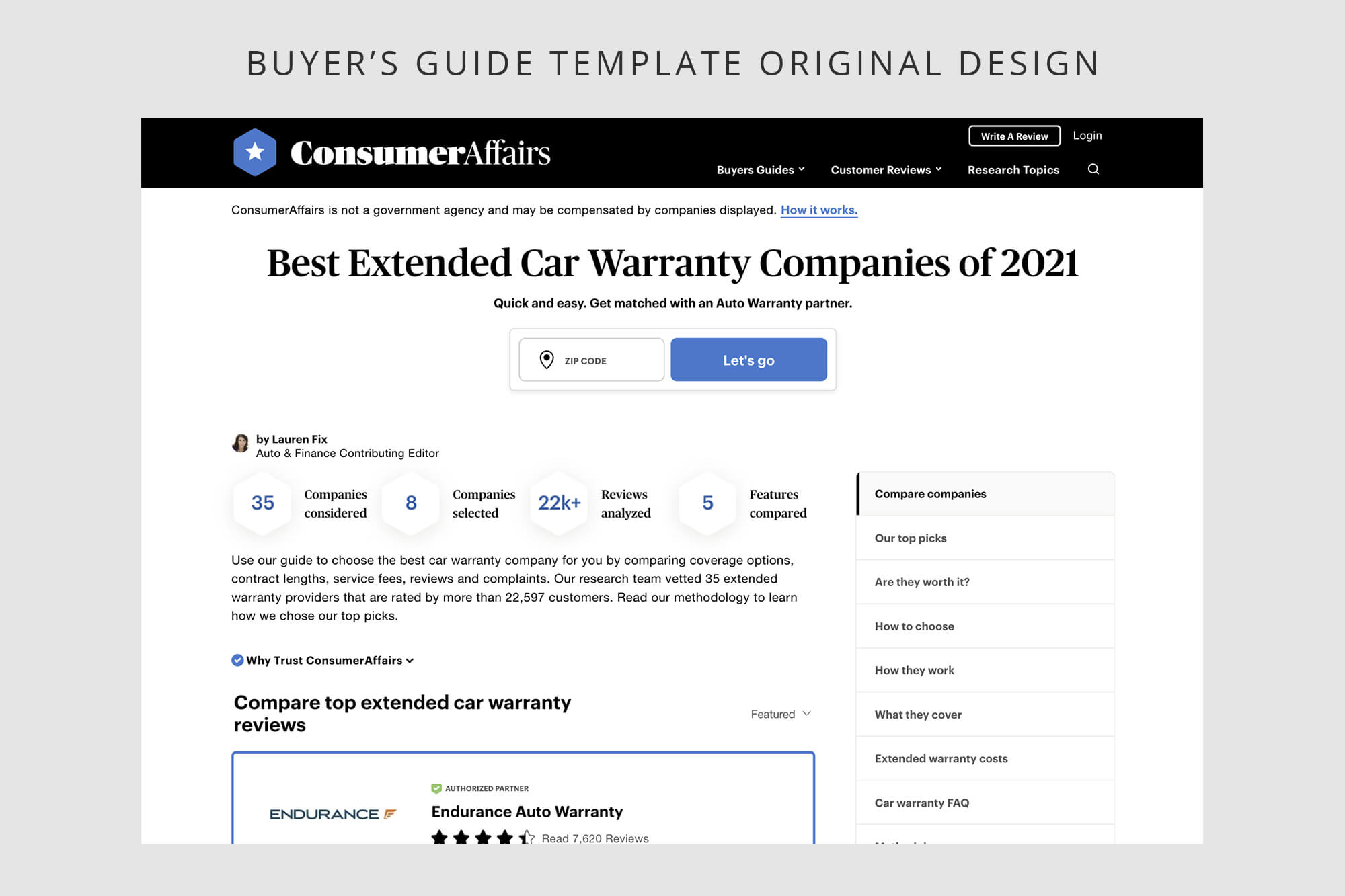 At the beginning of this project, this Buyer's Guide template was one long simple white template and the data was showing a higher bounce rate even though it had good content and information for the people coming to the page.