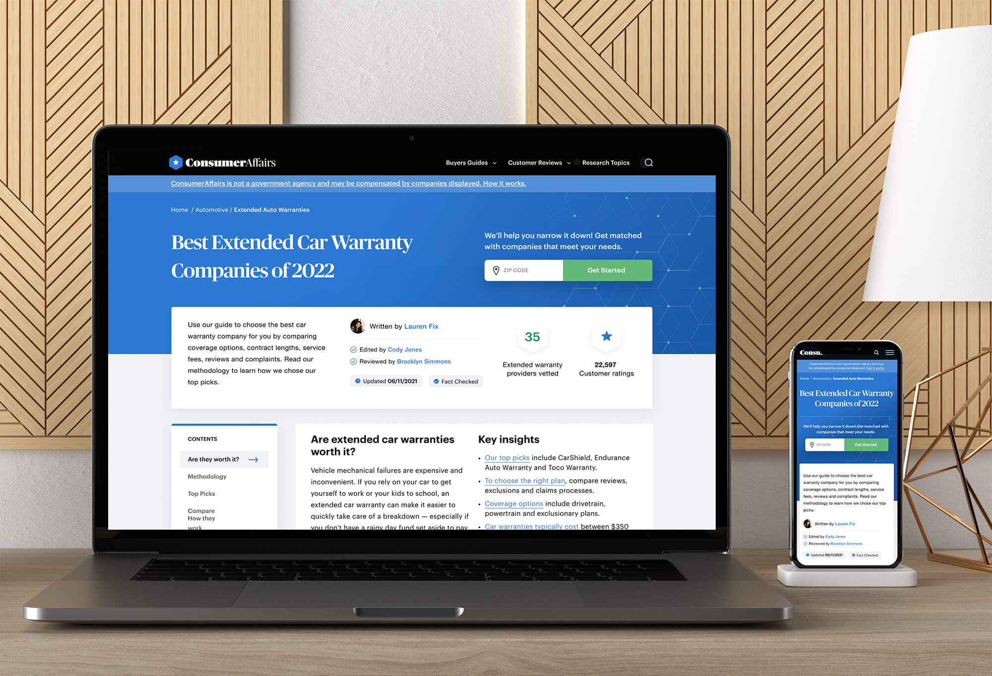 Always be iterating and looking to improve your site's experience for your users. Sometimes designs need to be audited to see how they are truly performing and how your users are interacting with your site + products. On ConsumerAffairs, all of the Buyer's Guide page types cover a specific topic and provide everything a person in the market needs to know about that specific topic — everything from top brands, actual customer reviews, and educational content. This is a compilation of UX improvements made in phases to the Buyer's Guide template that were driven by digging into the data.